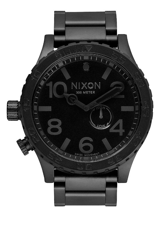S prémiovou funkčností – Japonský strojek se třemi ručičkami a miniciferník se snadným nastavením přílivu a odlivu – poskytuje tento model svému nositeli neustále všechny informace potřebné tady na Zemi. Ušlechtilá nerezová ocel zajišťuje neobvyklou výdrž a jedinečné detaily se postarají o světový vzhled těchto hodinek. STROJEK: Nixon na míru vyrobený švýcarský quartz s třemi ručičkami a analogovým menším ciferníkem pro příliv/odliv. Korunka a tlačítko na pozici 9:00. CIFERNÍK: ciferník obsahuje tučně tištěné indexy, tištěné minutové stopy, pomocný ciferník s CD texturou a na míru modelované ručičky s luminescentní výplní POUZDRO: 51 mm, 300m/30ATM, nerezová ocel s tvrzeným minerálním sklem, trojitě těsněná šroubovací korunka a tlačítko z nerezové ocele , jednosměrně otáčecí luneta pro odpočet času NÁRAMEK: 25 mm, nerezová ocel, tří dílný, dvojitá zapínací přeska. FUNKCE TIDE: ukazatel přílivu a odlivu. Cena: 11 990 Kč. www.garashop.cz