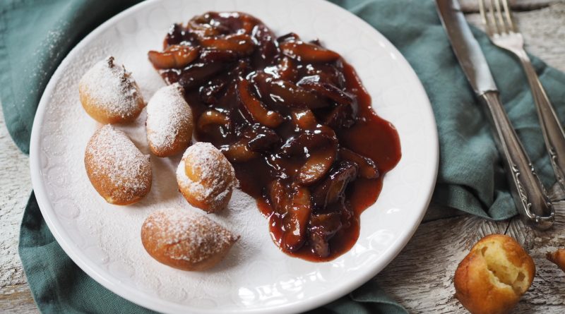 Na pánvi rozehřejeme máslo s třtinovým cukrem a necháme lehce zkaramelizovat. Přidáme pokrájené švestky, balzamikový krém a krátce povaříme, dokud se karamel nerozpustí. V robotu prošleháme vejce, cukr, vanilkový extrakt a tvaroh. Poté do směsi postupně přisypáváme mouku smíchanou s práškem do pečiva. V menším rendlíku rozehřejeme olej na smažení a lžičkou namočenou v oleji vkládáme těsto. Osmažíme z obou stran a necháme na mřížce odkapat. Koblížky pocukrujeme a servírujeme se švestkovým rozvarem.