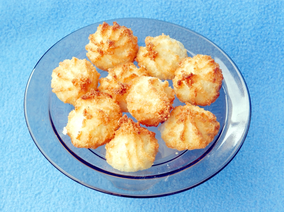 Z bílků ušlehejte pevný sníh, vmíchejte kokos a najemno nastrouhanou limetkovou kůru. Lžičkou nebo cukrářským sáčkem vytvořte malé hrudky na plech vyložený pečicím papírem. Sušíme v troubě na cca 180 °C do „zlatova“.