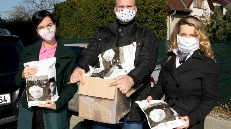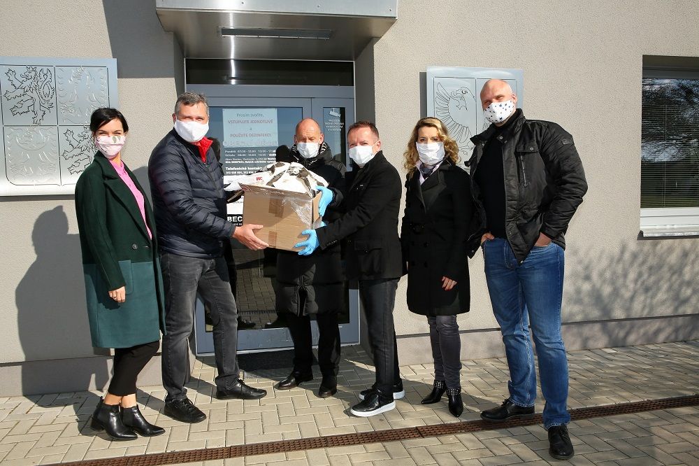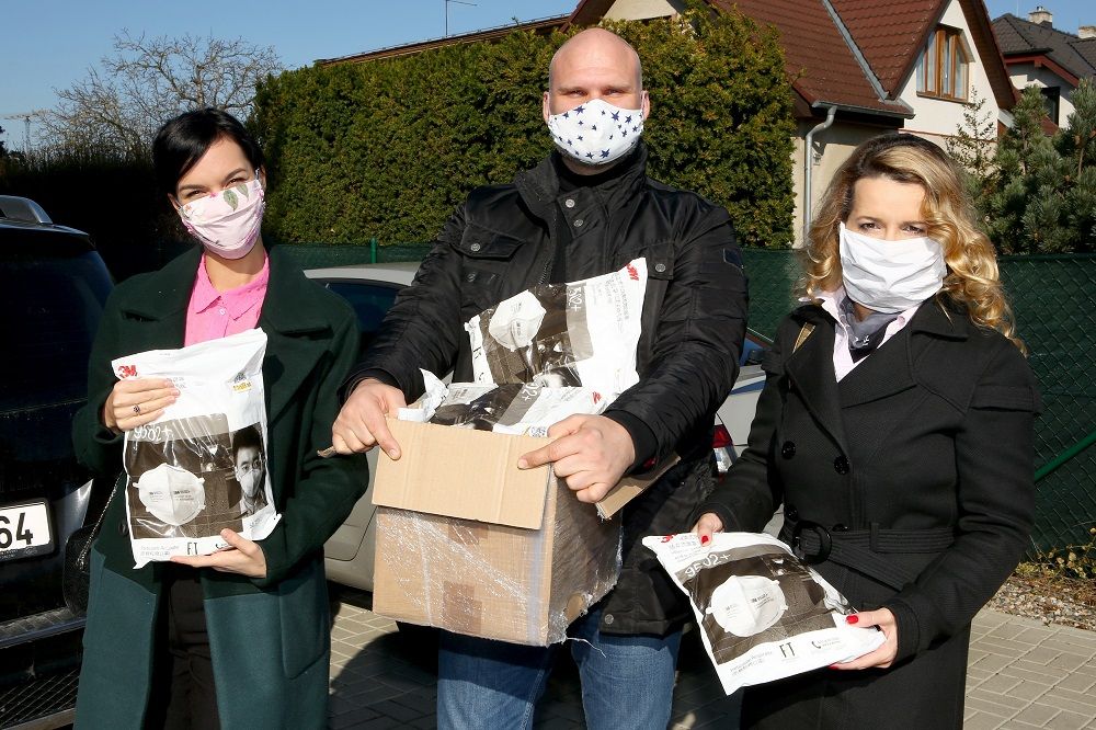 Markéta Muzikářová a Radka Pavlovčinová nasadily roušky a vypravily se do Vestce, kde spolu s majitely kasina Magic Planet Gold Vestec Michalem Lorencem a Mirkem Vajdákem předali respirátory pro místní obec.