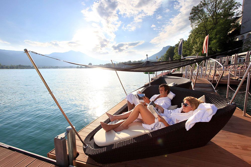 Ten je dnes jedním z nejvyhlášenějších hotelů pro romantiky v Rakousku. Čtyřhvězdičkový luxusní prázdninový hotel se pyšní grandiózním lázeňským areálem „SPA im See“, který jako by se vznášel na jezeře. Ve třech podlažích ovšem najdete do detailu propracovaný vodní wellness ráj s velkým areálem saun, parních lázní a vším, co k tomu patří.