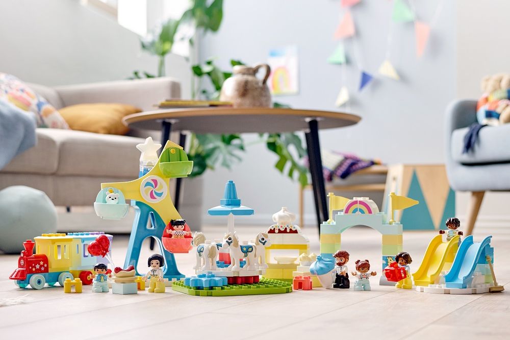 Vydejte se společně se svou ratolestí na výlet do zábavního parku a objevte vzrušující nabídku atrakcí, které zaujmou a zabaví bystré dětské ručičky i hlavičky. Připojte se k 7 DUPLO postavičkám a vydejte se vstříc zábavě na skluzavce, kolotoči s mechanickým pohonem nebo na velkém ruském kole.