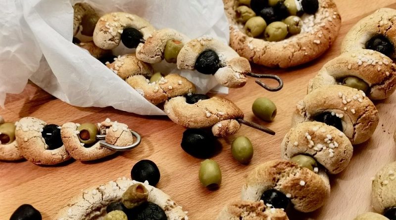 Nejprve si smícháme droždí, cukr a teplé mléko. Promícháme a necháme cca 15 minut vzejít kvásek. Poté promícháme mouku, sůl, prášek do pečiva, olivový olej a prolisovaný česnek s připraveným kváskem. Poté přidáme 100 ml teplé vody a zpracujeme řidší těsto, které posypeme moukou a necháme na teplém místě 1 hodinu kynout. Po hodině posypeme moukou a ručně vypracujeme pevné těsto. Vyválíme tenký váleček a omotáme kolem špejle, na kterou jsme si střídavě napíchali černou a zelenou olivu. Vytvořené spirálky potřeme žloutkem a posypeme hrubozrnnou solí. Pečeme v předehřáté troubě cca 20 minut na 200 °C dozlatova. Servírujeme s česnekovým dipem nebo jen tak.