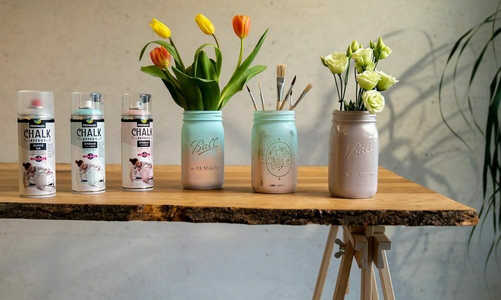 Díky sprejům Primalex můžete experimentovat s barevnými variacemi a kombinovat různé výtvarné techniky. Určitě tak nezůstanete pouze u výroby jedné sklenice. V domácnosti se pro ně navíc najde různé využití. Můžete je použít například jako vázu na čerstvé jarní květiny nebo jako stojan na tužky, štětce či líčidla. Stanou se tak nepostradatelným doplňkem téměř do každé místnosti.